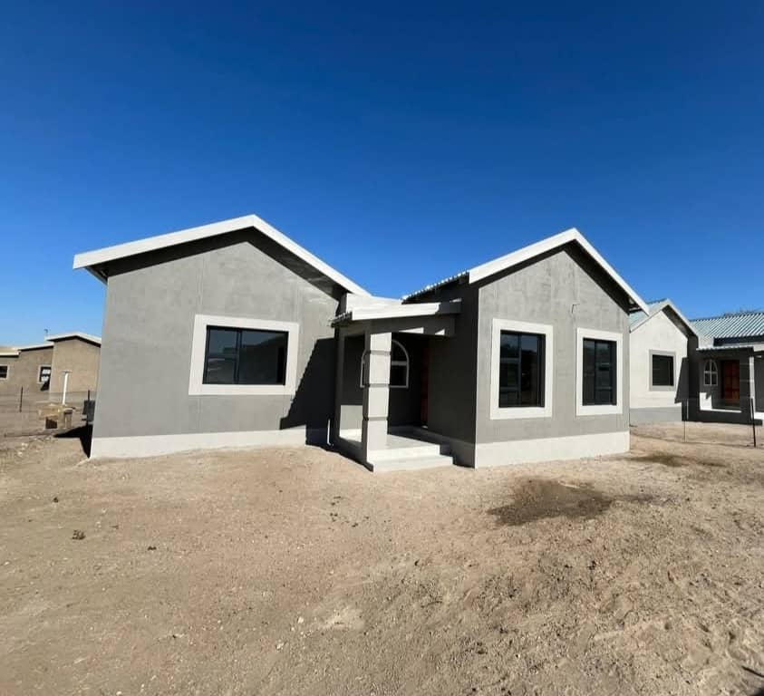 If your dream is to own your fist brand new home, this is the opportunity to buy a fresh and newly build quality home in Dolerite Ridge Okahandja. Built on your own self standing Erf of 450 m2. Situated with a great view of the mountains and town. Close to the Okahandja Mall, Doctors and walking distance from schools.